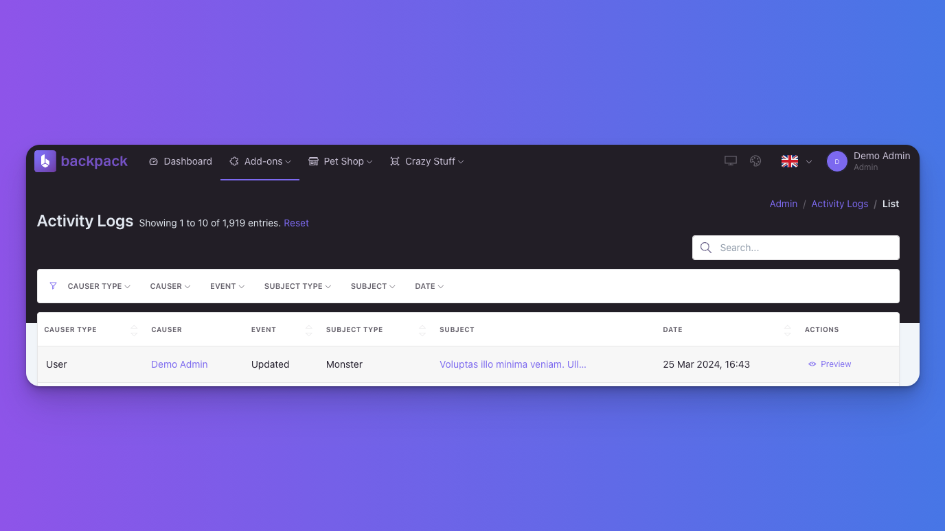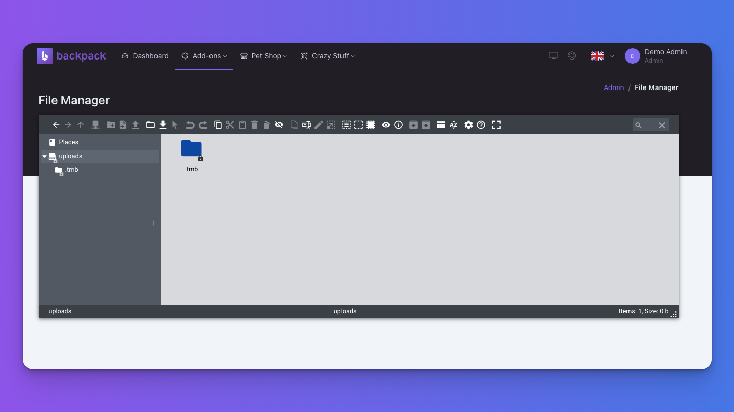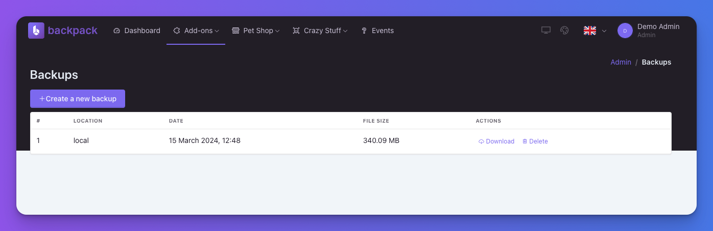 这 包裹 在 Backpack 管理面板中添加语言切换器下拉菜单,允许管理员将应用程序切换为他们喜欢的语言。